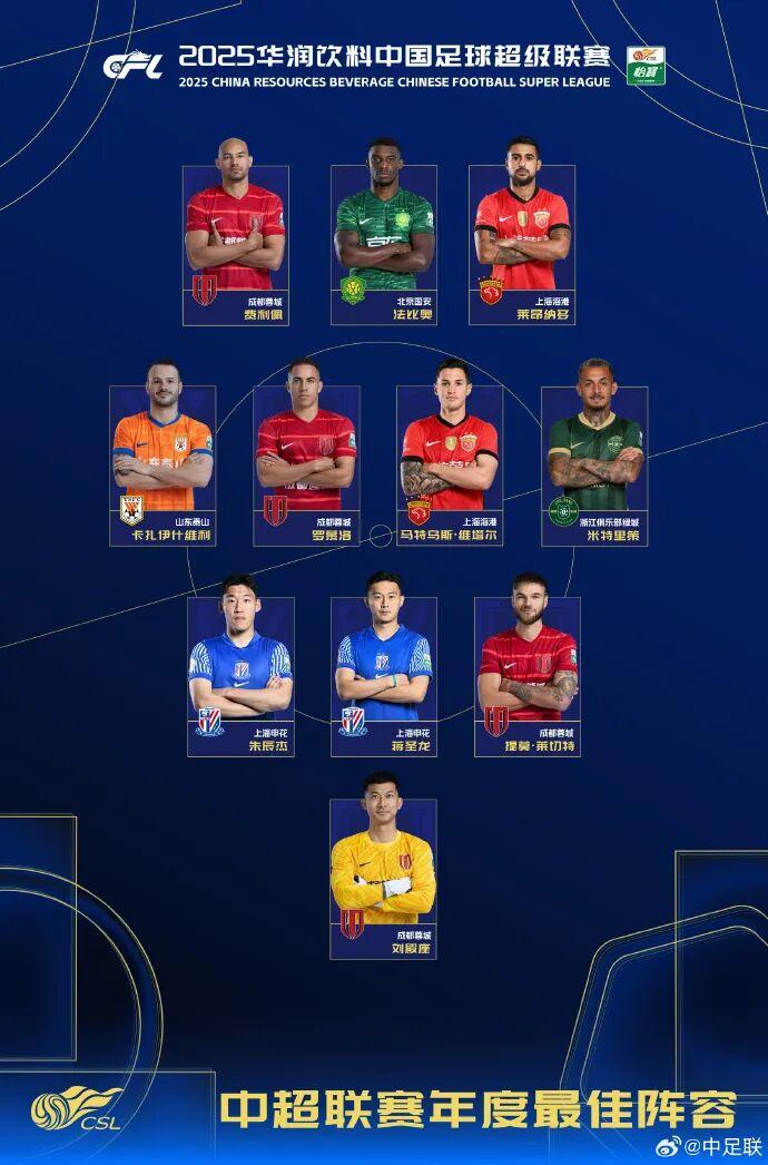 中场:卡扎伊什维利(山东泰山)、米特里策(浙江俱乐部绿城)、罗慕洛(成都蓉城)、马特乌斯·维塔尔(上海海港)